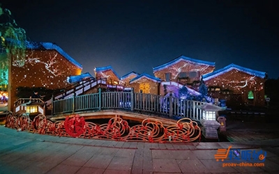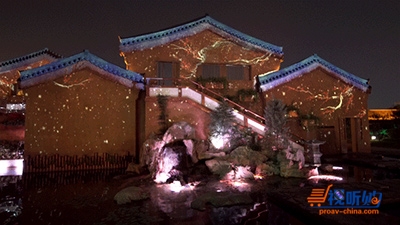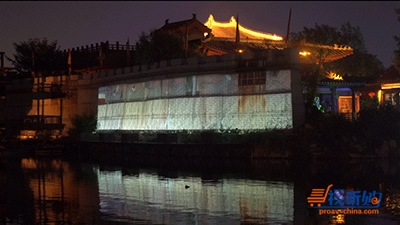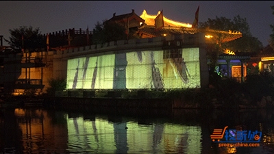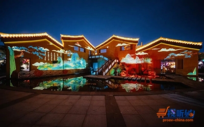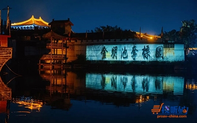 在Vivitek(丽讯)高亮度激光工程投影机的映射下,园内一座座仿宋建筑群成为了天然幕布,灵动还原千年前大宋都城的辉煌盛景。