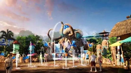 卡乐星球•恐龙水世界将声光电科技、影视特效与多媒体网络等完美结合,融展示、科普、娱乐及参与性表演于一体的戏水主题乐园,园区“干饭龙餐厅”门口处设计一地面互动区域,让园区充分释放与游客的互动性,实现360°娱乐无死角的非凡体验。