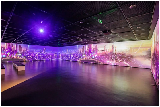 回望历史,是对未来更深切的展望,来到《未来梦》展区,由10台Vivitek(丽讯)8000流明工程投影机打造的沉浸式展区以全景式的视角,呈现了各行各业对华强北的美好畅想与探索。占地200平的演播厅,以其中三面墙为投影面,凭借Vivitek(丽讯)工程投影机高亮度、高对比度以及精准的色彩还原,以磅礴的气势充分诠释恢弘的华强北未来之梦。