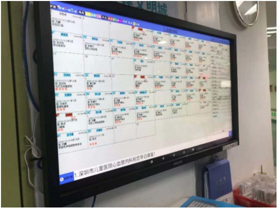 应用于护士站作为查询机使用,其不仅可呈现患者信息、床位信息、值班人员信息等内容,在为护士提供便捷查看相关数据的窗口的同时,也可以使患者及其家属及时了解到值班人员的联系信息。同时护士站大屏可以呈现当前病区的患者呼叫状态,便于及时掌握就诊患者需求。