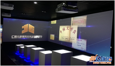 企业展厅是一个展现企业实力的重要窗口,作为企业和品牌形象的依托,企业展厅展示效果有着十分重要的战略意义。广西北部湾投资集团,主要承担立体交通、水务环保、旅游、产城投资等领域的开发建设。为了向客户全方位展现北部湾投资集团综合实力和风采,在企业展厅内采用9台NEC CR5450WL激光商务投影机打造出别出心裁的融合方案,担负起企业风采、企业文化等信息展示窗口的重任。
