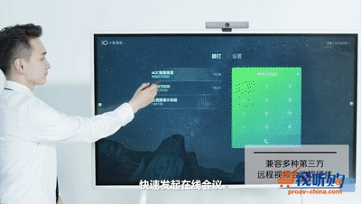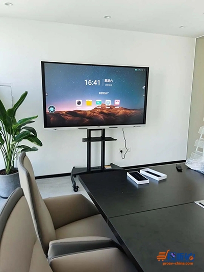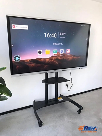在此次落地应用中,AOC为之搭配了立式支架,打破空间固有性,带来灵活高效的会议体验。UI主界面设有视频会议、无线投屏、文件管理等常用快捷应用,同时可移动化侧边功能栏一键即能展开更多会议中的应用功能,操作更便捷,能够满足日常会议操作需求。