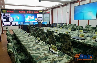 该指挥室的所有会议桌均应用itc数字会议系统,每坐席配置发言单元,拾音距离远而声压级不变,音质优良,具有音量调节和手动开启/关闭的功能。