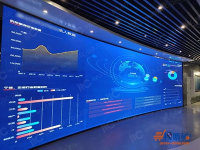 itc小间距LED显示屏,视角覆盖面积广大,快速动态画面无延时刷新;本次大数据局采用P1.667小间距LED曲面屏,超薄箱体单元设计,占用空间少,嵌入墙体,美观大气;智能调节亮度,自动适配环境,满足7×24小时观看不刺眼;画面细腻,高清高质,满足超高清视频播放需求,可以显示多个画面,让数据信息一目了然;可直接调入与处理海量视频监控信息,满足各种情况调用及指挥调度。