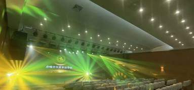itc工程师深入现场,对学校报告厅舞台方位进行了详细的勘测、思考,最终将色彩明丽的舞台灯光系统,充分融入报告厅现场,为艺术展示服务!