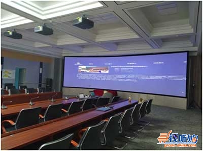 本方案中的投影面所选的是9.86×2.6米的弧形幕布,使得会议厅中各个角落都能舒适的观看到投影画面,并且激光投影的画面是反射光,相比于液晶屏幕的偏振光来说,激光光源的画面更适合长时间观看。加上距离远画面大,综合来看,即时长时间开会,与会人员的眼睛也不会因此而觉得疲劳不适。