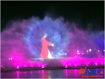 赢康为该项目选用了八台科视投影设备来完成投影工作,以上下叠加的方式进行安装,共同针对水幕进行画面投射,在经过赢康设计师的融合调试工作之后,水幕画面播放流畅,精彩纷呈。