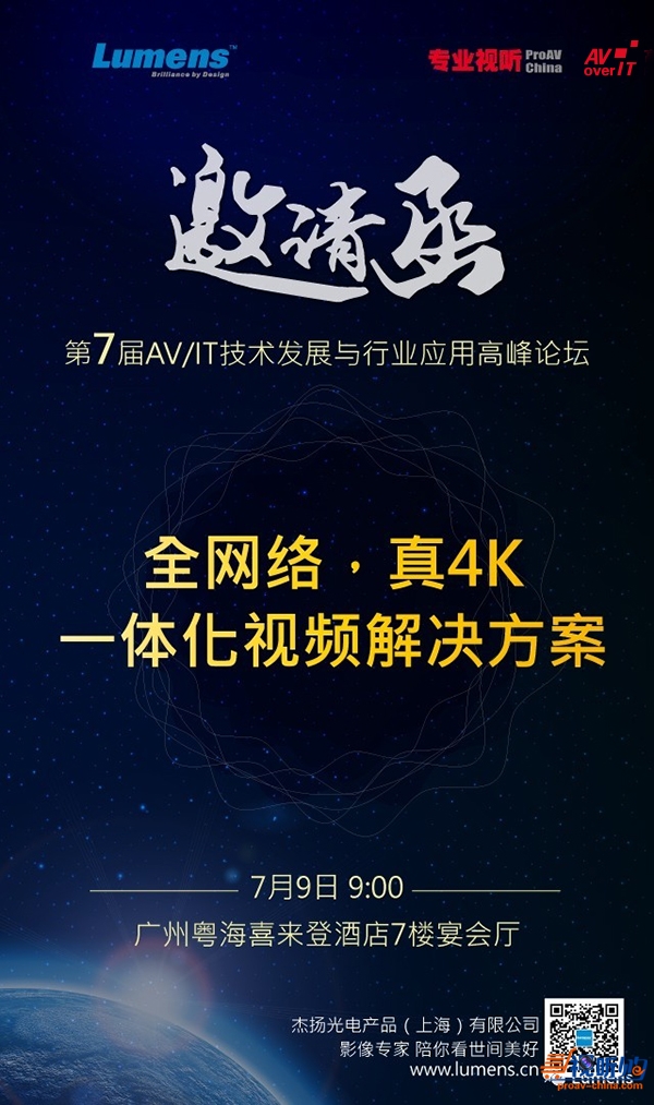 Lumens受邀参加本次高峰论坛,Lumens将发表以Lumens|全网络·真4K,一体化视频解决方案为主题的演讲,并带去Lumens视频信号采集、传输、显示、处理完整视频生态圈系列产品。