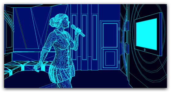 房间里的画面不只是二维的,也不仅限于在某一个墙面上,360度、720度的呈现一种浑然天成的独3D效果,将KTV包房中一切可以被利用的空间作为反射物,通过前沿的高科技视频技术创造出浑然一体的整体视觉画面,让整个KTV包房天、地、四周墙体甚至桌面、沙发、也可能是桌面上的酒具等等充满沉浸式效果。让K歌者在演唱的同时,沉浸其中,画面随歌声的律动进行变化和舞蹈,可以让人置身在大型演唱会中,也可以置身在茫茫草原高歌青藏高原,也可以身处浪漫土耳其演绎深情款款,等等只要你想得到的,一并融入环境带来的变化,完全沉浸其中。