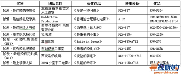 第七届“索尼杯”婚庆视频大赛获奖作品名单