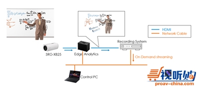 将摄影机与基于AI的边缘分析设备REA-C1000 相结合后,用户可以实时创建高质量的节目内容,以保持观众的积极互动参与,提供强大的远程拍摄和流媒体解决方案。举例而言,凭借Chroma key-less CG Overlay(无色度键CG叠加)技术,SRG-XP1 可以轻松地在密闭空间中创建富有吸引力的视频内容。这一功能可以精准擷取被摄者的影像并重叠于其它画面的背景中,无须专用的后屏背景或特殊培训。同样地,SRG-XB25 也得益于 REA-C1000 强大的变焦与Handwriting Extraction feature(手写提取功能),确保远程观看演示文稿的观众可以清楚地看到手写内容和图表,并可同步看到演讲者的动作与手势。