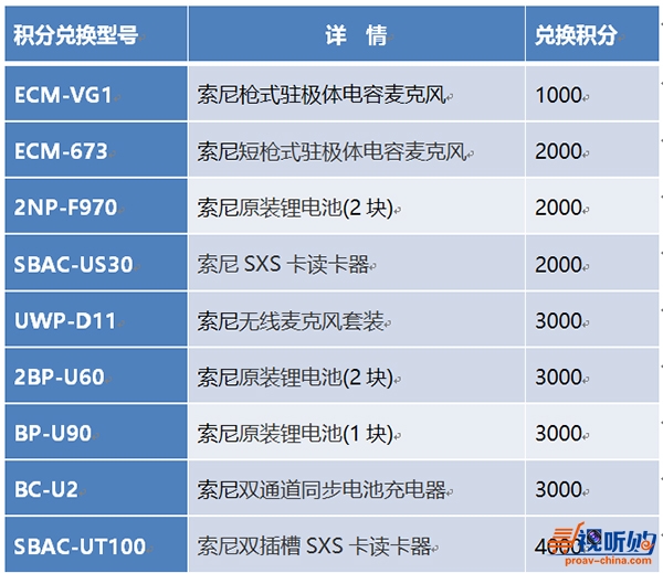 注:积分奖品有可能根据库存情况而发生变动,如积分奖品缺货,将以兑换奖品时期同等或相近价格的索尼产品代替,恕不另行通知。