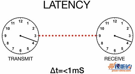 延迟,音频网络中的数字传输和音频处理延时,长久以来,都是一个严重的问题,当工作在现场演出和录音的情况时,之前的技术为了减少延时往往牺牲了灵活性,使用DANTE就无需担忧。简单无限的连接,固定延迟低至150微秒,