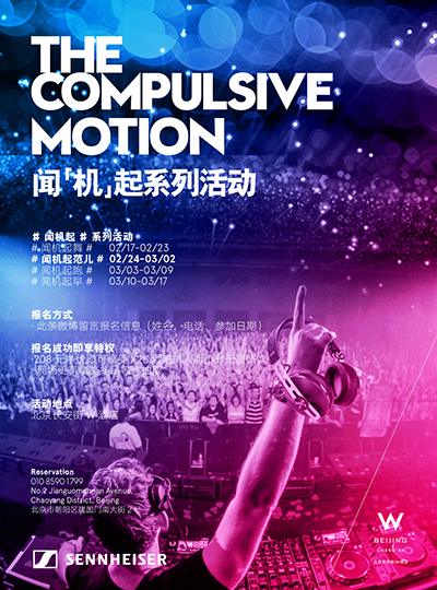 2月17日至3月17日,Sennheiser携手帝都潮流地标的北京长安街W酒店,联合举办“闻机起”系列跨界活动。在为期一个月的两大品牌联袂活动中,闻机起“舞”、闻机起“范儿”、闻机起“跑”、闻机起“早”四大主题活动接力上演,精彩不断。