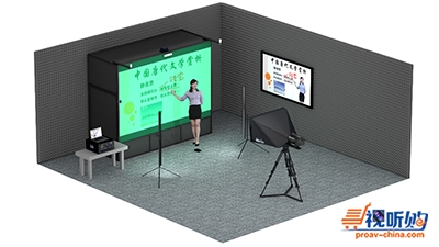 洋铭微课教室的背景实际上是一个背投系统,背投影技术把课件投在洋铭专利的绿幕上,老师可以在绿幕上看到投影的课件并进行讲解、标注,但摄像机只能拍到绿色而拍不到课件,不影响抠像效果,扣出的老师人像再和老师的课件在后台进行完美的结合,就形成一幅场景真实、效果优异的合成讲课过程。因为有背投影系统、投出来的课件仅老师看得见,因此,合成的效果就如同真实的上课场景,不仅不会有异样感,也不会出现一般电视台天气预报节目主持人手指着气象图,但眼睛不看气象图的“不对眼”的感觉。