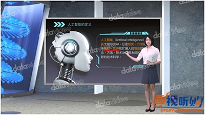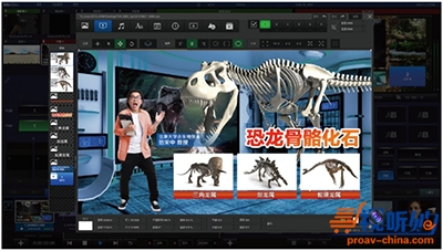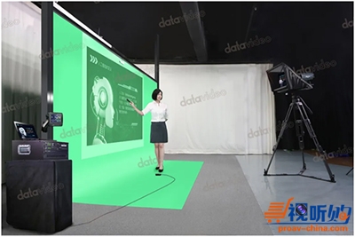 洋铭TVS虚拟云课堂,老师们置身一块绿布场地,通过事先备好的课程,设置课程背景内容,和课程中需要的3D物件演示,进行教学内容的边录边播,或者录制好编辑后再放到教学平台上。