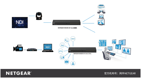 NETGEAR的M4250系列交换机是NDI的完美选择,具备一个专用配置文件于NDI 4,以及一个用于NDI 5,支持Q-SYS,Dante或AES67音频。