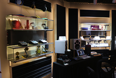 在专业和个人录音产品静态展示,api的THE BOX、1608模拟录音控台、5500双通道均衡器、527压缩器;TT-73桌面麦克风放大器、AK-47mkll录音话筒、CU-29录音话筒、AR-51录音话筒、M60录音话筒、M80-SH军鼓动圈话筒、M82 Dynamic动圈话筒、M81-SH鼓录音话筒、S7R监听音箱、耳机、PreSonus StudioLive32调音台、PreSonus AR12调音台,品种和功能全面覆盖个人和专业录音需求。