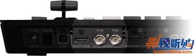 输出端有2个3G SDI与1个HDMI接口。其中 SDI PVW和MULTI-VIEW输出可以进行设定,以便应用于各类支持SDI或HDMI输入的显示设备。