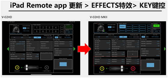 除了字体不同之外,菜单设置总体变化不大,个别项有细微的区别,例如视音频的输入输出设置,V-02HD MKII都更加强大,对应设置的菜单项也会更详尽。具体可以看上图表格所列,这里就不再进行逐项对比。