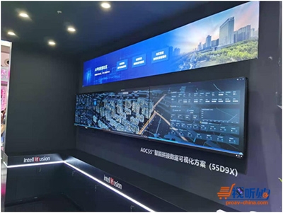 展会现场,AOC 1×3 55D9X智能拼接屏搭载智慧社区系统,切实展示智慧社区可视化解决方案。通过拼接屏Hyperlink功能,拼接时能够始终保持等比例画面互联,不拉伸,不变形,画面呈现更舒适。