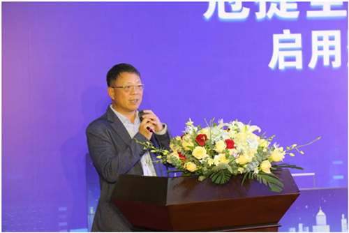 ▲武汉市蔡甸人民政府区长郝胜勇现场发表讲话