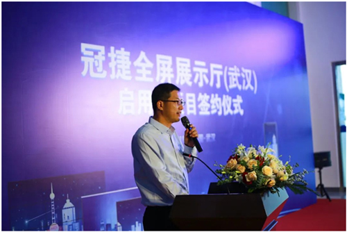 活动现场,武汉冠捷总经理刘志水致欢迎词。他表示,冠捷显示科技(武汉)有限公司(以下简称“武汉冠捷”)2004年成立,武汉艾德蒙科技股份有限公司(以下简称“艾德蒙科技”)2008年成立,园区内始终缺少规模化、系统化的全屏展示厅,此次全屏武汉展示厅的落成,将全面展示集团旗下数智全屏视讯解决方案及创新发展成果。