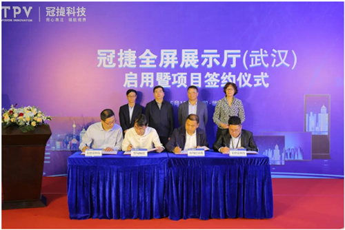 5月18日,冠捷全屏展示厅启用暨项目签约仪式举行,武汉市蔡甸人民政府区长郝胜勇及各级单位领导、冠捷科技副总裁兼OBM中国区MNT/PD/HTV BU总经理陈涛、冠捷科技OBM资深顾问周伟君、武汉冠捷总经理刘志水、艾德蒙科技总经理阎立东以及行业合作伙伴等出席此次活动,共同见证全屏展示厅的正式启用,领略全屏魅力!