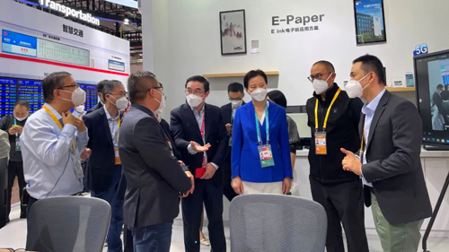 商务部台港澳司副司长李晓晖一行,国台办经济局副局长陈斌华,上海市SMG党委书记、董事长沈军,上海市台办副主任王立新,闵行区委副书记、区长陈华文、闵行区副区长可晓林一行,闵行区人大副主任杨其景,闵行区吴泾镇党委书记金海民、镇长王学政,闵行区马桥镇党委书记张文琦、镇长刘冬梅,青岛高新区工委副书记、管委常务副主任、城阳区委副书记李天传一行,以及厦门市火炬代表团等各地方政府、行业协会、企业代表团先后莅临冠捷科技集团展台参观,冠捷科技副总裁兼OBM中国区总经理周伟君、冠捷科技副总裁兼OBM商显事业部总经理王必禄、冠捷科技副总裁兼全球产品总经理宣迈克等接待并陪同参观,一同领略冠捷科技在视讯领域的前沿应用。