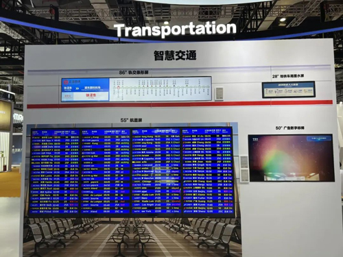 公交站点场景下,具备低功耗节能显示、超长时间续航、高亮护眼显示等功能的电子墨水屏产品则可以作为公交站台、站杆的公交信息牌,与城市信息系统联动兼容,提供全程站点和到站信息动态显示,实现智慧出行。机场航显场景中,外观简约时尚、高清高亮的55英寸航显屏可以实现航班信息引导,实时呈现航班及登机口信息,提升旅客的乘机体验。