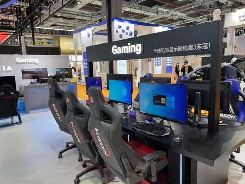 进博会现场的游戏专区中,更分类展示了专业电竞以及娱乐游戏两大应用场景。专业电竞区,保时捷设计联名款、“英雄联盟”定制机、云游戏、OLED高刷新率和4K Mini LED等电竞显示器惊艳亮相,通过超高刷新率、Mini LED等业内先进的技术及优秀的人体工学设计,为电竞玩家带来更震撼的视觉体验,助力把握瞬间战机,一击制胜!