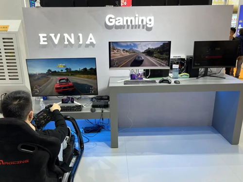 娱乐游戏区则展示了众多高端游戏显示器。除了拥有165Hz刷新率、0.1ms疾速响应外,还拥有VESA 认证的HDR1400影院级画面高亮动态成像技术,全方位提升沉浸体验的环景光技术,以及极具设计感的外观,为XBox、PS5以及Switch等主机游戏玩家、3A类高画质游戏玩家以及各类模拟器游戏玩家带来震撼的视听体验。