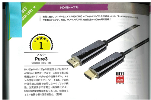 在《HiVi》2021年6月刊中,详细介绍有 Pure 3 获得环绕系统类别HDMI 电缆第一的原因及专家评语,并大篇幅报道 Pure 3 的产品性能和实物测评。