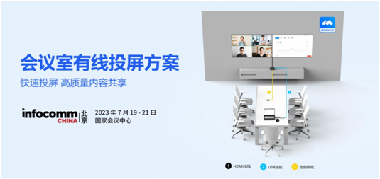 在7月19-21日的北京InfoComm展会中,美乐威展台和腾讯会议展台都会搭建产品演示demo,展示轻便易用的会议室有线投屏方案。美乐威展台位于C馆CE1-02,腾讯会议展台位于C馆CA1-01。