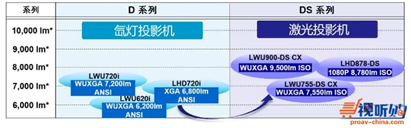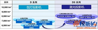 作为备受好评的 D 系列升级版,DS 全系列 3 款投影机从氙灯照明平台升级为激光照明平台,全线亮度提升至新高度。