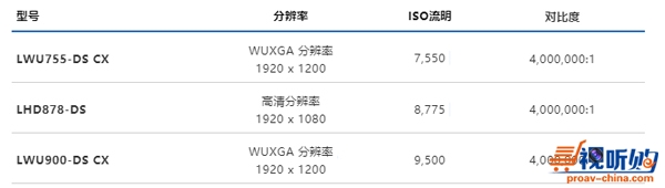 ISO 流明从 7,550 到 9,500 不等,