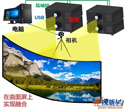 ❺ 内置变形和融合功能。基于照相系统的手动或自动调整,可针对安装在角落、平面和柱面的 12 部投影机进行快速设置。
