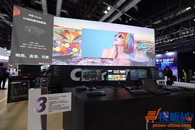 EB1-01 号展位,观众在现场全方位体验到科视3LCD、1DLP和3DLP激光投影解决方案带来的视觉盛宴,令人赞叹的内容管理和图像处理技术所呈现出来精美影像也惊艳了现场观众。