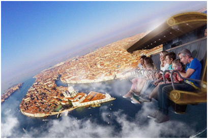德国欧罗巴公园Voletarium飞行剧院是欧洲最大的飞行剧院,位于瑞士和法国边境附近。Voletarium设有两个Brogent的i-Ride运动基座,配备一对面积超过418平方米的圆顶形屏幕。游客在飞行剧院乘坐虚拟吊床,在吹风、水雾和香雾带来的环绕声和微妙气味中实现飞行的梦想,畅游欧洲15处地标建筑和绝美风光。