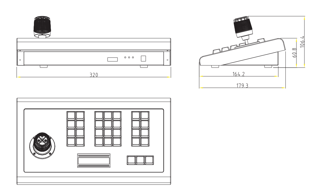 金微视视频会议摄像机控制键盘 JWS11CK是模拟三维控制键盘,兼容VISCA协议,还有PELCO-D-P协议,可以控制索尼协议的视频会议摄像机和监控球机,使用232或者485可以控制255台会议摄像机。