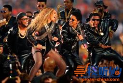 丹佛野马队和卡罗莱纳黑豹队的精彩比赛前半场结束时,中场秀出场的是著名的Coldplay乐队,随后布鲁诺·马斯和碧昂斯也登上舞台。马斯以一曲“Uptown Funk”开始,其合作表演者马克·罗森现场打碟,以及技巧高超的伴舞者均为马斯富有魅力的歌唱表演增加了多维度的视觉效果,令人印象深刻。布鲁诺·马斯的演出使用的是定制Sennheiser头戴式话筒解决方案。