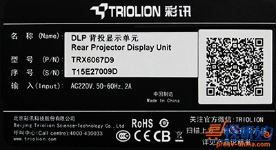 鉴于此,彩讯科技决定启用二维码防伪标识查询系统。彩讯科技的每台产品都有其唯一的身份证明,就是这一张类似于身份证的二维码真正保证产品的真实性。用户可通过扫描二维码了解到该大屏的详细信息,包括名称、型号、出厂企业等。