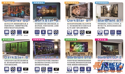 此次亿立影视科技展示了CineGrey 5D,DarkStar 3, DarkStar 6, DarkStar 9  DarkStar ST, StarBright ST,StarBright ST2,StarBright CLR2  共八款抗光幕。
