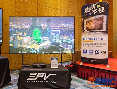 现场展示的EPV系列DarkStar 9-顶级影院专用抗光幕  (此画面未经任何修正)
