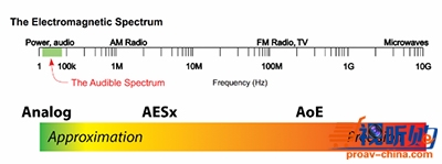 这也就很好地解释了为何还有那么多低性能模拟系统被使用了。存在缺陷的模拟接口依然可以传输音频,并且一般没人能发现它们的缺陷,除非拿更完美的接口直接做对比。所以说,从模拟到数字AESx、到AoE,随着频谱位置上移,接口细节也变得越来越精密,规则的变通空间越来越小。不过,越来越高的复杂度换来的是更多的通道和功能——这些对许多系统而言都很有价值。