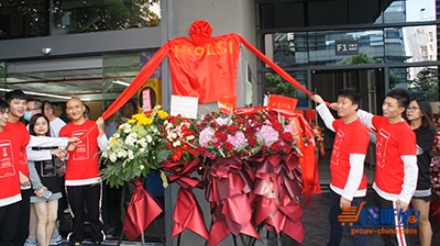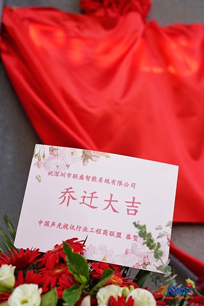在一片祝贺声中,联盛智能员工代表一起揭开红绸,为此次的乔迁活动拉开了序幕。