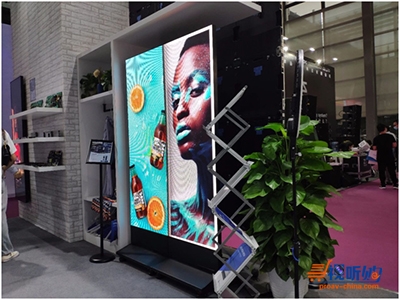 在青松的展位上,HERAL直角柱形拼接成为展会上的吸睛魔方。以长条屏进入市场的HREA L除了具有能实现多种创意拼接的箱体尺寸设计,其45°斜角设计的箱体可以真正实现无缝的直角拼接,为柱形应用提供了完美解决方案。配合亮眼灵动的演示素材,HERA L 尤其适合商场和零售店内播放广告使用。
