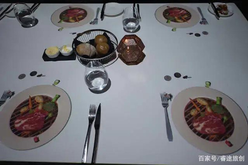 当3D投影中的迷你大厨忙活完,真正的大厨也正好完成了与刚才表演中一样的菜肴,就可以开始享用了,原本等餐的烦躁过程也变成了一种视觉享受。