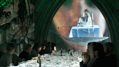 第一次看到这张图片,你一定以为这是一对情侣在海边享受夕阳下的晚餐,吹着微凉的海风,享受着美味的食物。而事实是,这片由3D全息投影技术营造出的“大海”,只是位于荷兰的第七感餐厅创造的非同寻常的就餐体验。