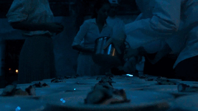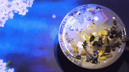 每道菜上桌的间歇,餐厅会根据菜品的特色调整投影内容,所有人都在静静的观赏,沉浸在双重的享受中,无聊的等待在这里根本不会存在。食客在享用星级大厨的手艺同时,也在这个超现实世界中,得到了视觉上的极大满足。